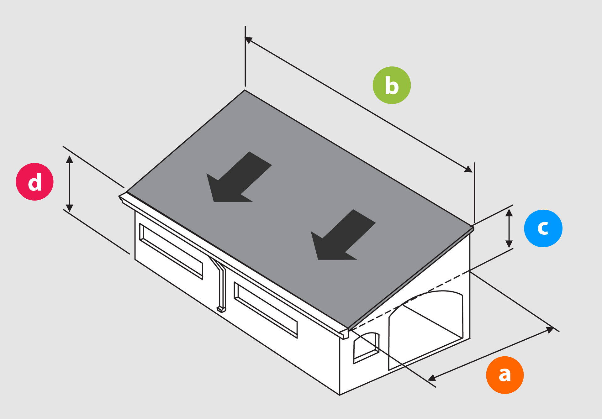 • Caso o telhado do seu projeto apresente mais de uma queda, será necessário realizar o cálculo com o simulação abaixo para cada queda. Assista ao vídeo para saber como calcular.