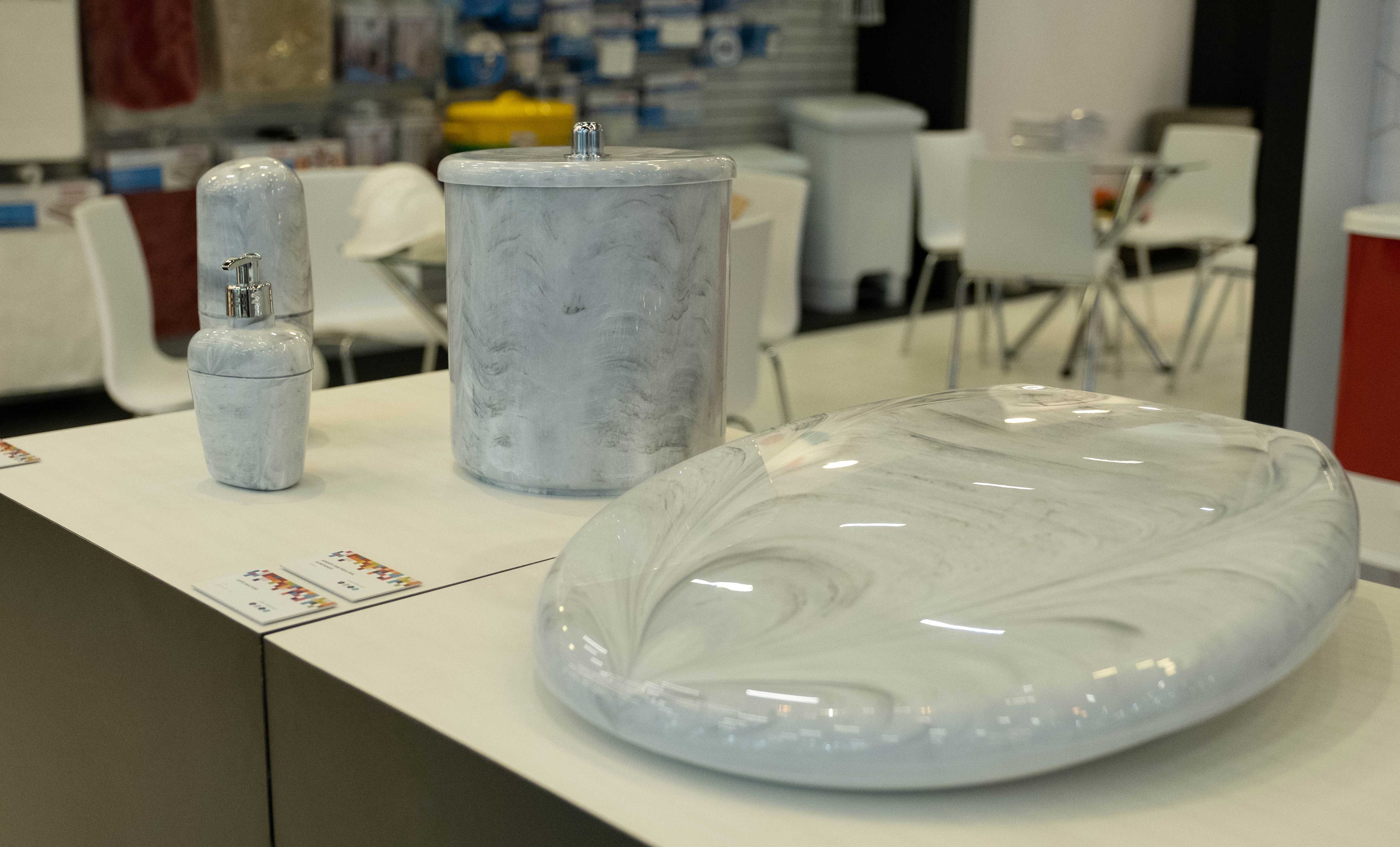 Outro acabamento que a Astra está lançando é o marmorizado nos produtos assento sanitário, lixeira, porta-escova e porta-sabonete líquido. Produzidas com acabamentos marmorizados nos tons branco, preto, marrom e verde, as peças são itens básicos que deixam o ambiente com um toque mais sofisticado.
