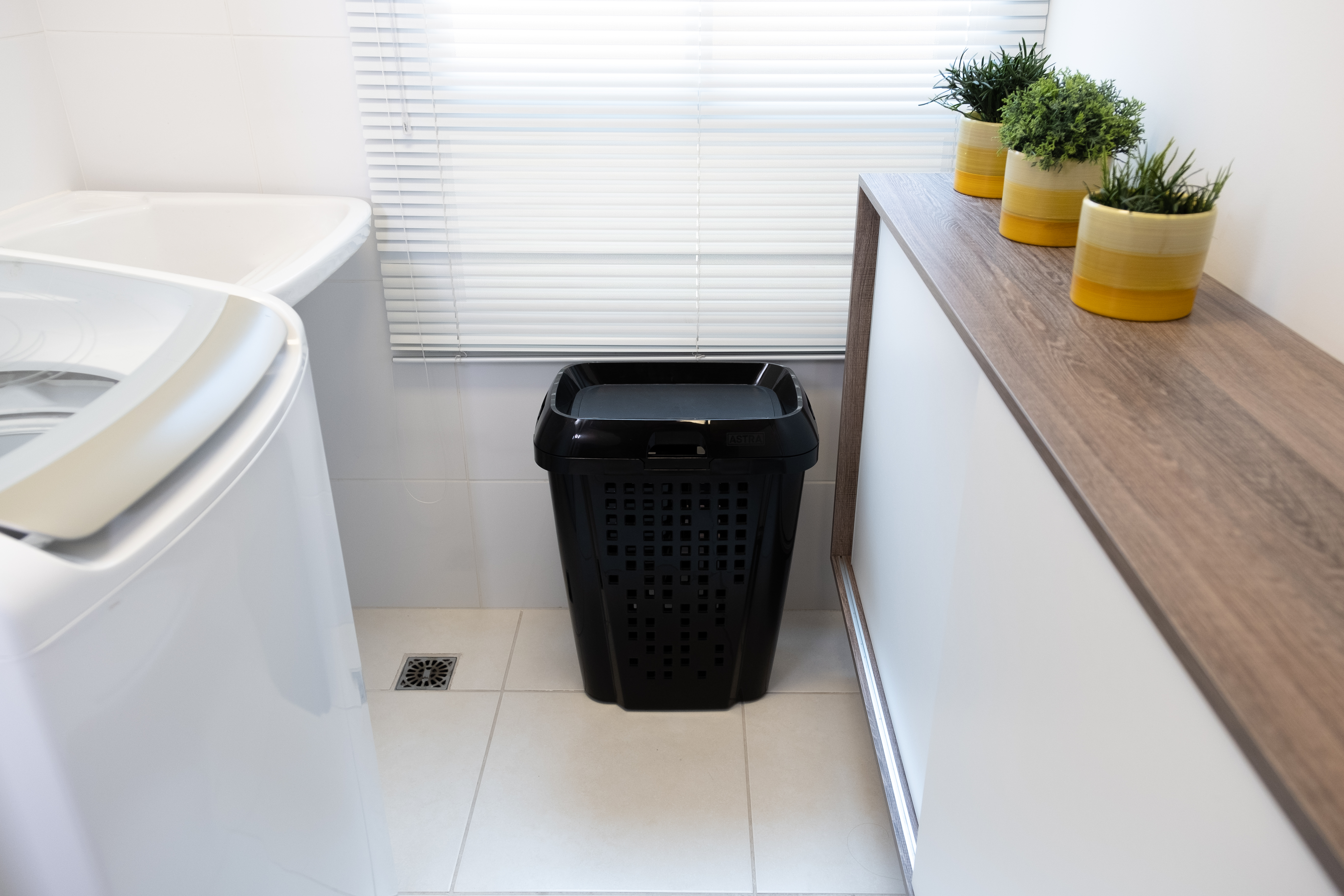 Alguns cômodos da casa, como a lavanderia, estão cada vez menores, principalmente em apartamentos. Por isso, a demanda por funcionalidade e itens que ocupam pouco espaço neste ambiente é crescente. O roupeiro telado é um lançamento da Astra que vai ao encontro desta necessidade. O modelo é compacto e versátil; sua abertura é multilateral, ou seja, a tampa pode ser aberta para qualquer um dos quatro lados. Além disso, possui um cesto para separação de peças para a lavagem. Um item prático e bonito, disponível em diversas opções de cores.